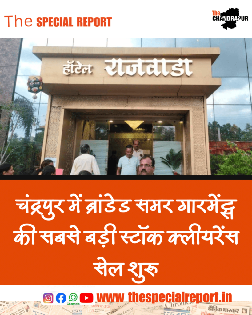 चंद्रपुर के फैशनप्रेमियों के लिए खुशखबरी! इस गर्मी चंद्रपुर में पहली बार इतने बड़े पैमाने पर ब्रांडेड समर गारमेंट्स की विशाल स्टॉक क्लीयरेंस सेल का आयोजन किया गया है। यह सेल शहर के प्रमुख स्थल होटल राजवाड़ा पैलेस, सरगम पेट्रोल पंप के पास, ताडोबा रोड, चंद्रपुर में 3 अगस्त को लगाई गई थी, पहले ही दीन ग्राहको का भरपूर प्रतिसाद मिला। अब केवल