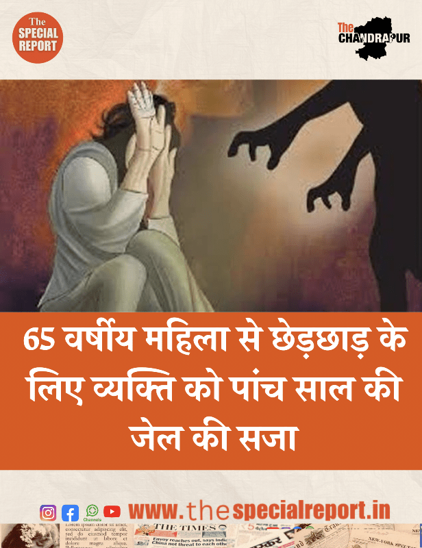 65 वर्षीय महिला से छेड़छाड़ के लिए व्यक्ति को पांच साल की जेल की सजा दिनांक 07/07/2025 को गढ़चिरौली निवासी आरोपी अयूब खान साहेब खान पठान के विरुद्ध महाकाली मंदिर क्षेत्र में 65 वर्षीय महिला के साथ छेड़छाड़ करने के आरोप में भारतीय दंड संहिता-2023 की धारा 74, 75 (i) (ii), 76 के तहत पुलिस