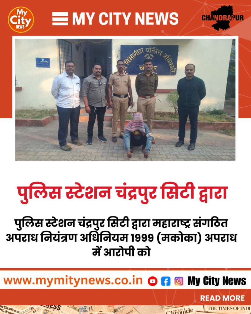 महाराष्ट्र संगठित अपराध नियंत्रण अधिनियम 1999 (मकोका) अपराध में आरोपी को गिरफ्तार किया गया पुलिस स्टेशन चंद्रपुर सिटी द्वारा आरोपी बादल ललित डोंगरे, उम्र 25 वर्ष, निवासी बागड़ खिड़की, उड़िया मोहल्ला चंद्रपुर को उपविभागीय पुलिस अधिकारी चंद्रपुर की विशेष जांच टीम द्वारा भारतीय दंड संहिता की धारा 310 (4), भारतीय शस्त्र अधिनियम की सह-धारा 3,
