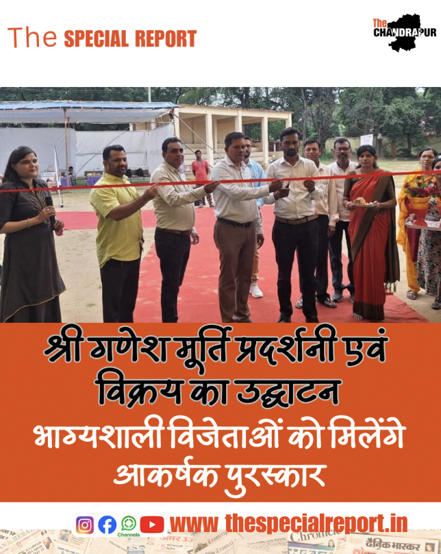 भाग्यशाली विजेताओं को मिलेंगे आकर्षक पुरस्कार चंद्रपुर, 25 अगस्त – चंद्रपुर नगर निगम द्वारा 24 से 27 सितंबर तक चंदा क्लब में आयोजित श्री गणेश मूर्ति प्रदर्शनी एवं विक्रय का उद्घाटन सोमवार, 25 अगस्त को सहायक आयुक्त श्री अनिल कुमार घुले और सहायक आयुक्त श्री संतोष गर्गेलवार ने किया। सहायक आयुक्त ने स्टॉलों का अवलोकन […]